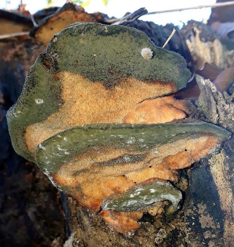 vor ein paar Tagen hat Uwe Kozina einen tollen Fund gemacht, den ich hier präsentieren möchte. Climacodon pulcherrimus ist leicht zu erkennen anhand der feinen Stacheln, der haarig-filzigen Oberseite, der rötlichen KOH-Reaktion und der großen "Doppelschnallen" an den Tramahyphen. Leider waren die Fruchtkörper schon ziemlich hinüber, weshalb sie untypisch aussehen. Hier gibt es aber eine schöne Präsentation dieser Art: https://www.mycocharentes.fr/pdf1/1624.pdf.