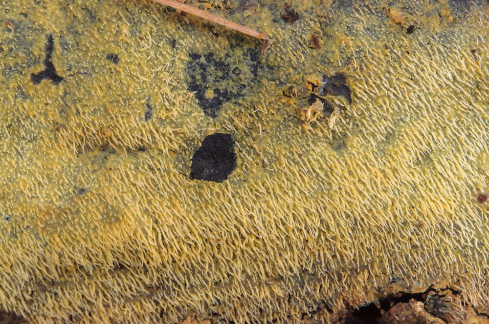 Antrodiella citrinella (= Flaviporus citrinellus): Der erste steirische Nachweis dieses hübschen und intensiv erforschten "Urwald-Pilzes", der nur auf bereits von Fomitopsis pinicola zersetztem Holz vorkommt. So auch hier, auf liegendem Nadelholzstamm, direkt auf bzw. neben einem alten Fom.-pin.-Frkp. .