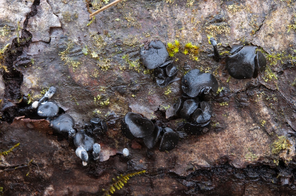 Scutellinia setosa: Sehr gedrängt auf der Borke eines liegenden Populus-Stammes wachsend. .