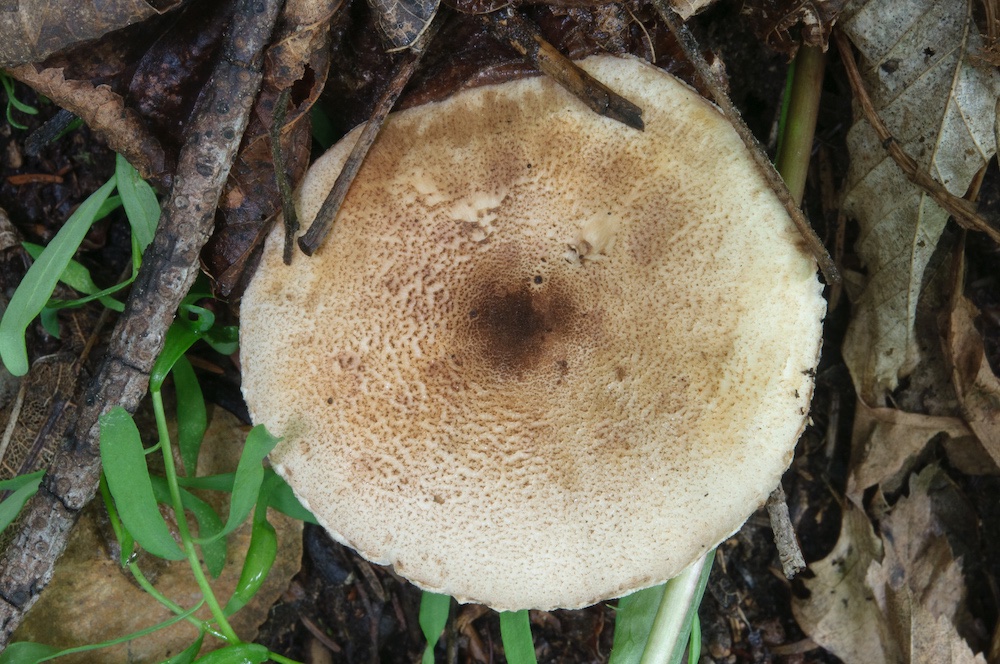 Leucoagaricus badhamii: An Straßenböschung im Laubwald.
