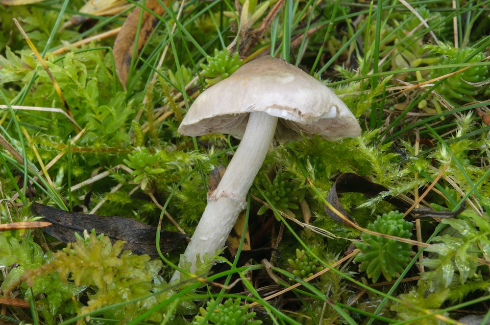 Inocybe cf. geophylla agg.: Bei Picea im feuchten Moos. Kompletter Albino – sogar die Sporen sind farblos!