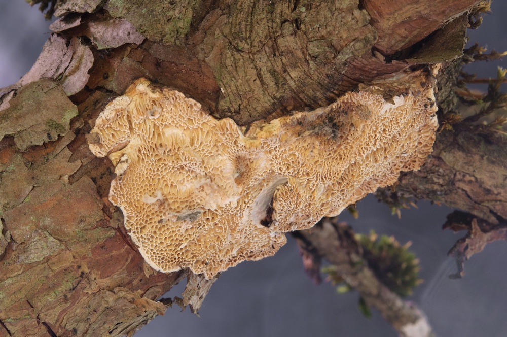 Diplomitoporus flavescens: Liegender Pinus-Ast. .