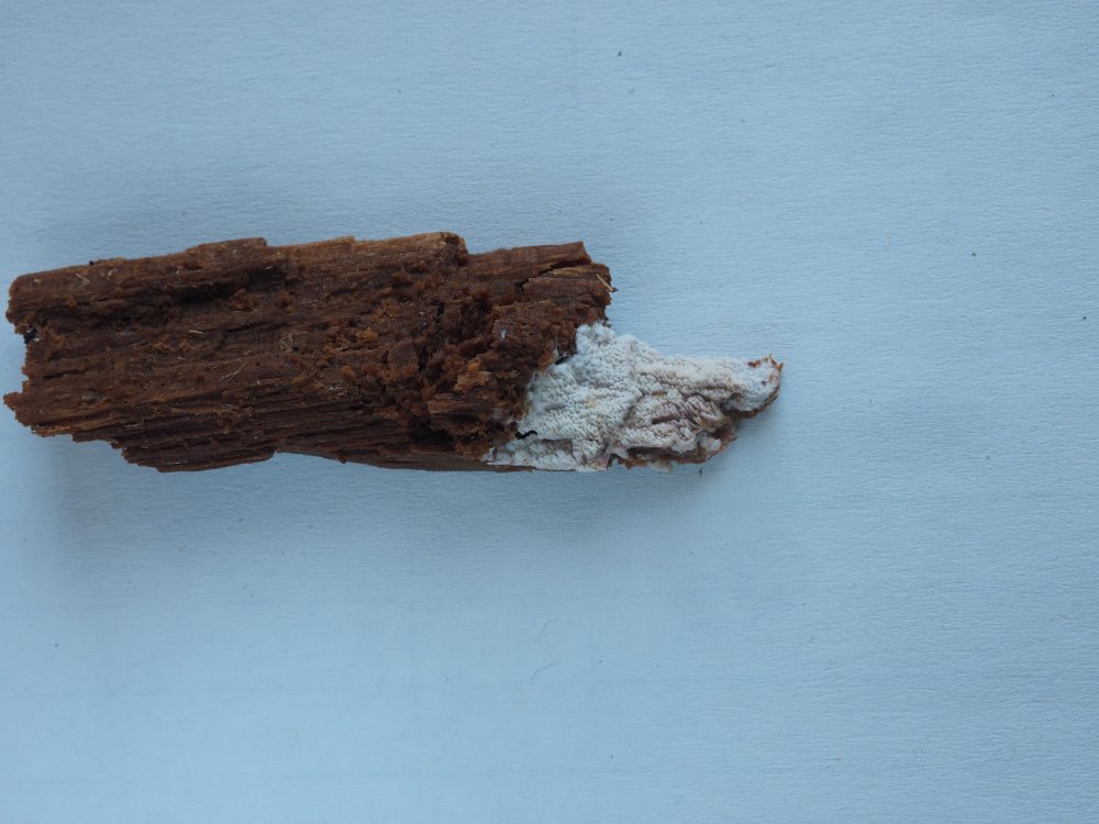 Dendrodacrys paraphysatus s. l.: Liegender Picea-Ast. Mit Dendrohyphidien und 3-fach septierten, dickwandigen Sporen. Mikroskopisch gut mit dem Artikel von Hahn & Karasch übereinstimmend.