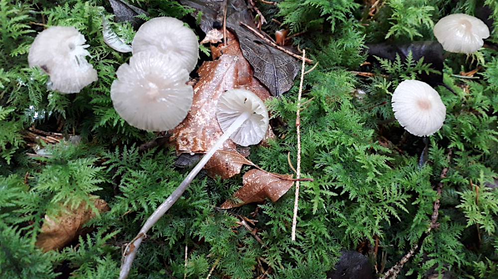 zu Inocybe, Peziza und Psathyrella trau ich mir ohne Mikroskop nix zu sagen. Der Gymnopus ist G. aquosus, denn die Rhizomorphen sind nicht weiß, sondern ocker-orangelich. Der Gymnopilus wird wohl ein G. penetrans sein. Die Mycena scheint einen schleimigen Stiel aufzuweisen, dann könnte Roridomyces roridus passen. Das letzte Bild zeigt Agrocybe dura, die ist rissig und sehr hell.