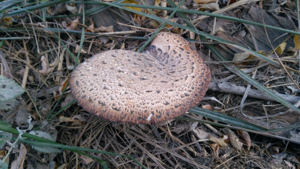 #2Ein weiterer Fund dort war noch ein älterer Polyporus squamosus (Schuppiger Stielporling) auf Holunder.