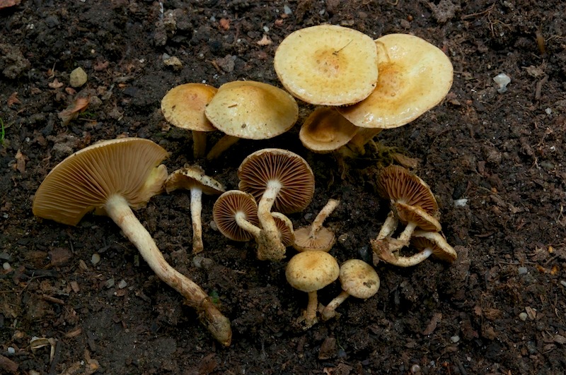 am Samstag fanden wir einen hübschen, hellgelben Schüppling auf einem abgeernteten Feld, ohne jegliche sichtbare Verbindung zu Holz. Die mikroskopische Untersuchung führte dann doch "nur" zu Pholiota gummosa. In Österreich ist diese Art vor allem in tieferen Lagen anzutreffen (vgl. Ö-Datenbank).