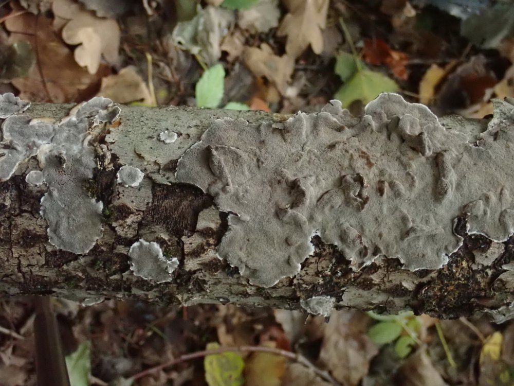 Bei dieser Verschwisterung von Armillaria und Pholiota würde ich gerne wissen, wie es denn im Substrat aussieht. Wachsen die Hyphen durcheinander, oder bleiben sie in ihrem Rayon? Gloeoporus dichrous wuchs an der Unterseite einer Populus tremula meterlang! Und die Fruchkörperlänge dieser Stereum rugosum, das Bild zeigt nur einen Teil, ist auch rekordverdächtig. Einen schönen Mittag, Heinz