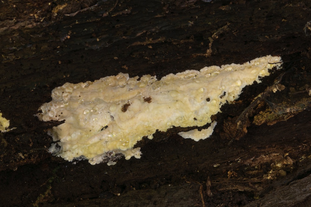 Fuscoporia viticola (wächst gerne resupinat an der Unterseite von abgestorbenen, noch befestigten Picea-Ästen)