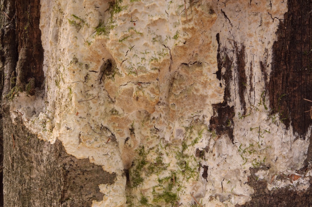 Oxyporus corticola: Stammwunde eines lebenden Fagus-Stamms.