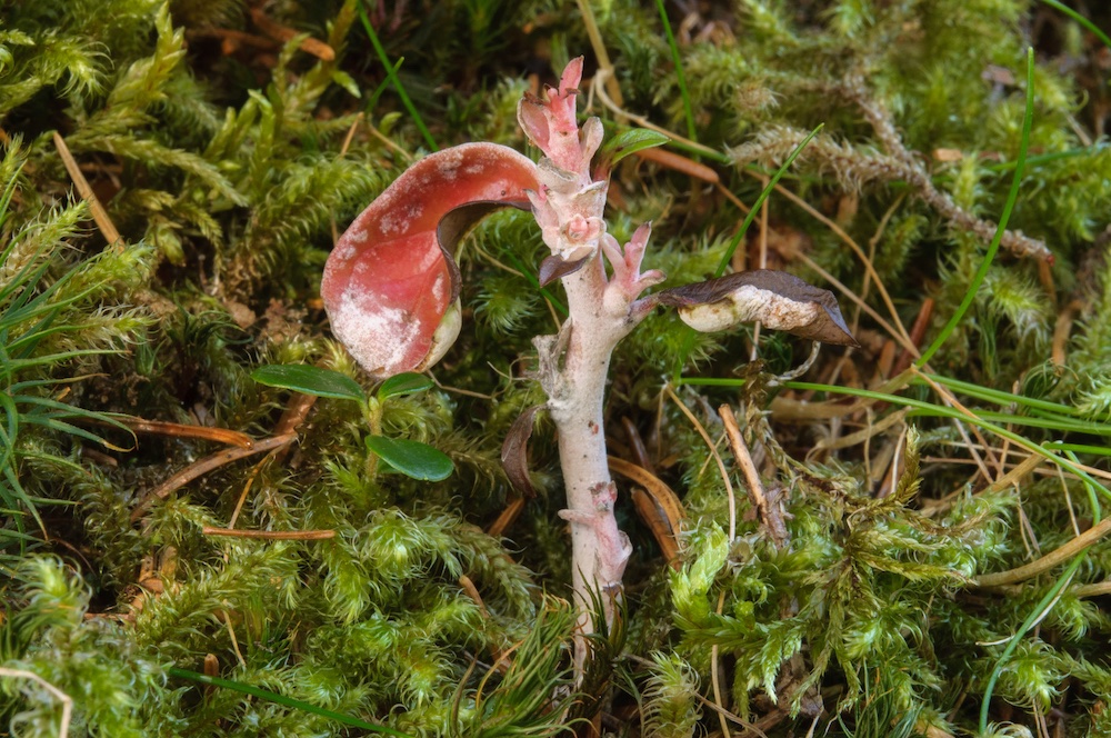 Postia floriformis: Vergrabenes Holz in Parkanlage.