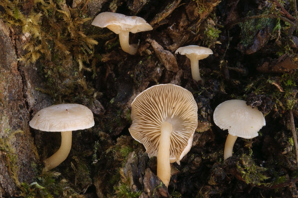 Clitocybe truncicola: An lebenden Stämmen von Ulmus glabra im Auwald.