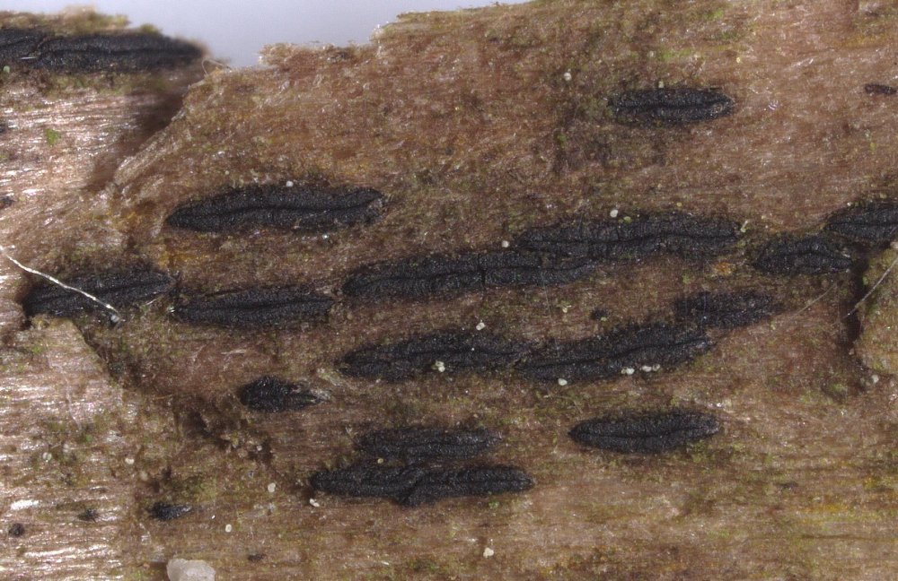 Capronia chlorospora: Entrindeter Laubholz-Ast.