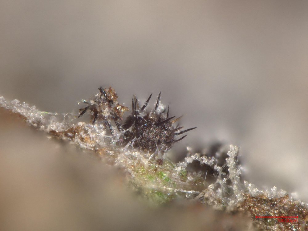 Capronia semi-immersa: Auf Picea-Ast.
