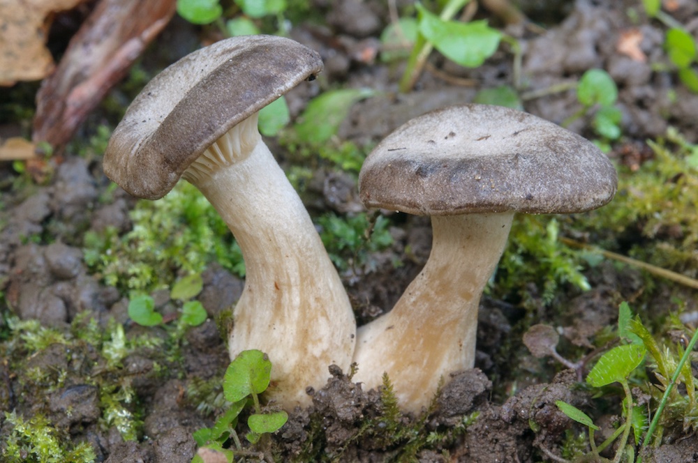 Clitocybula lacerata agg.: Morsches Nadelholzstück. Früher sind solche Kollektionen teilweise als C. abundans bestimmt worden. .