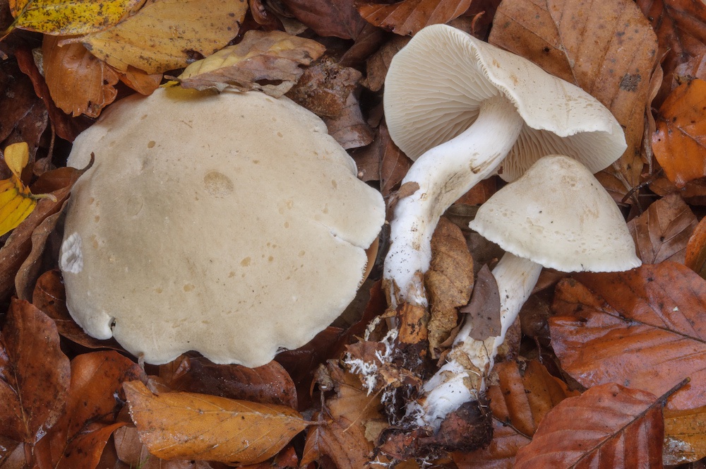 Leucocybe candicans: In der Laubstreu, Blättern aufsitzend. .