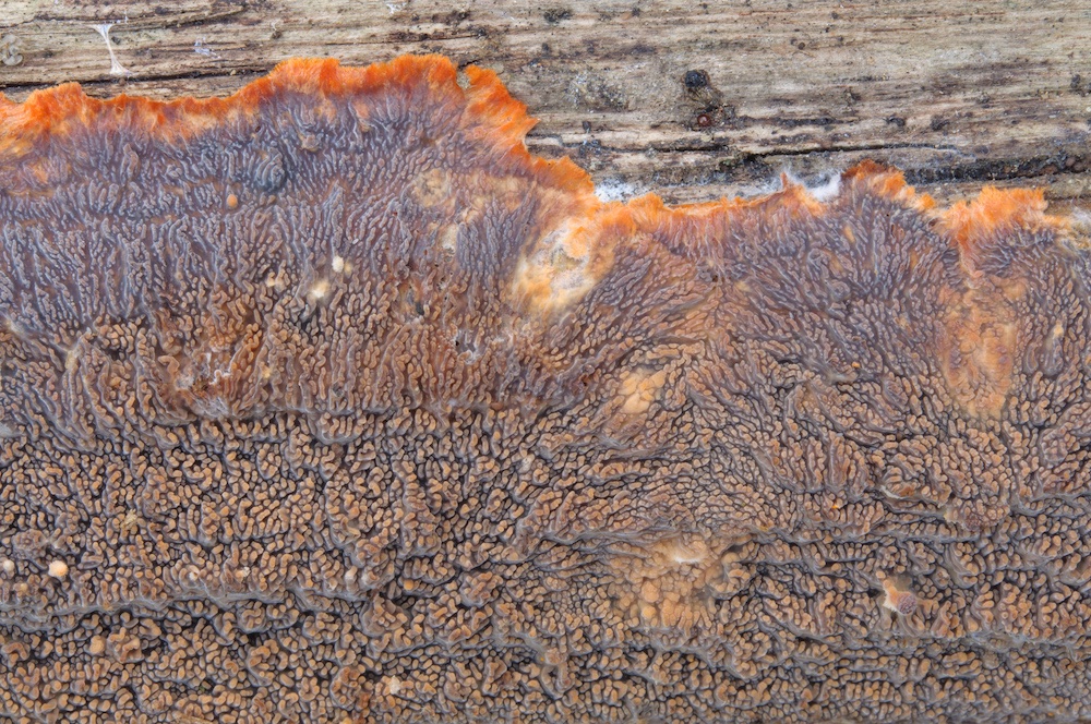Phanerochaete tuberculata (auch Efibula t.): Liegender Carpinus-Ast. .