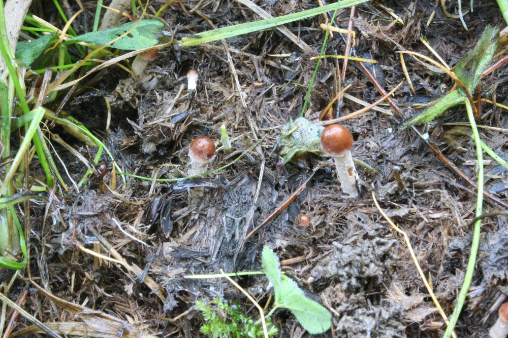 Diese kleine braunen Gesellen wuchsen direkt daneben - sollte das der Panaeolus in ganz jung sein? Eher etwas anderes, oder?