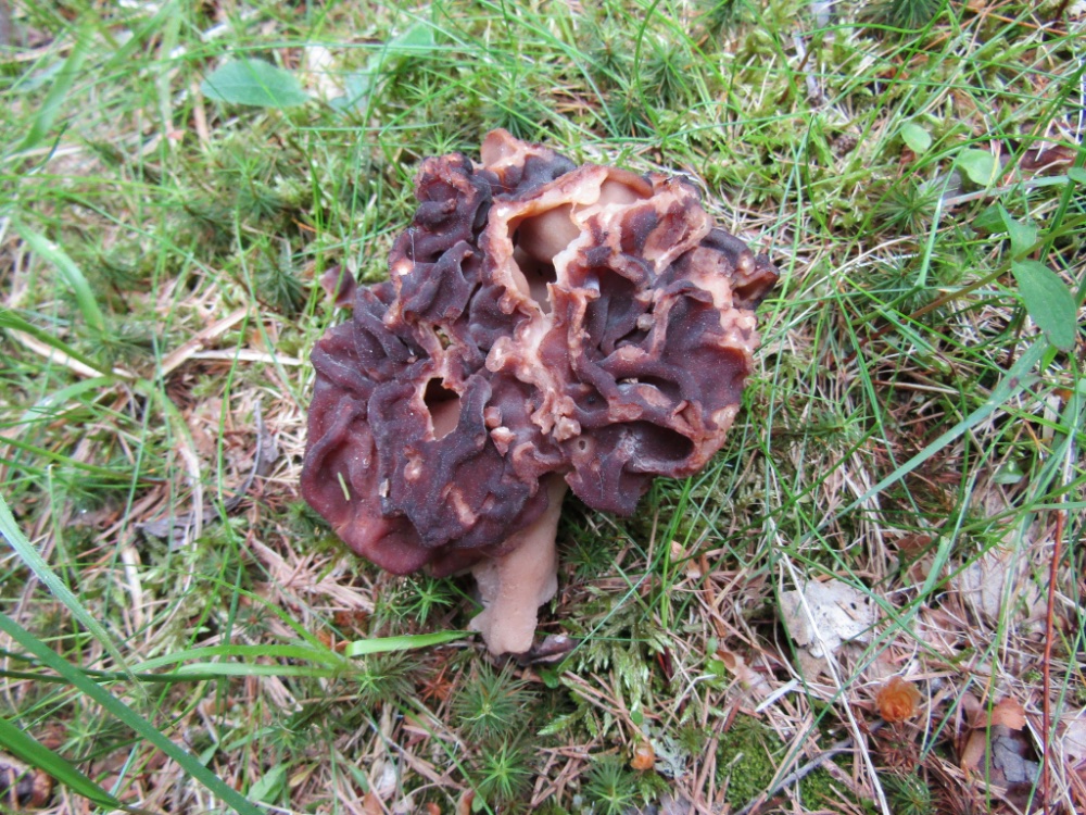 Dafür gibt es in tieferen Lagen in manchen Jahren massenhaft Gyromitra esculenta. Diesmal nur vereinzelt, weil der März sehr trocken war. Ein großen alten Pilz fand ich noch (siehe Bild).