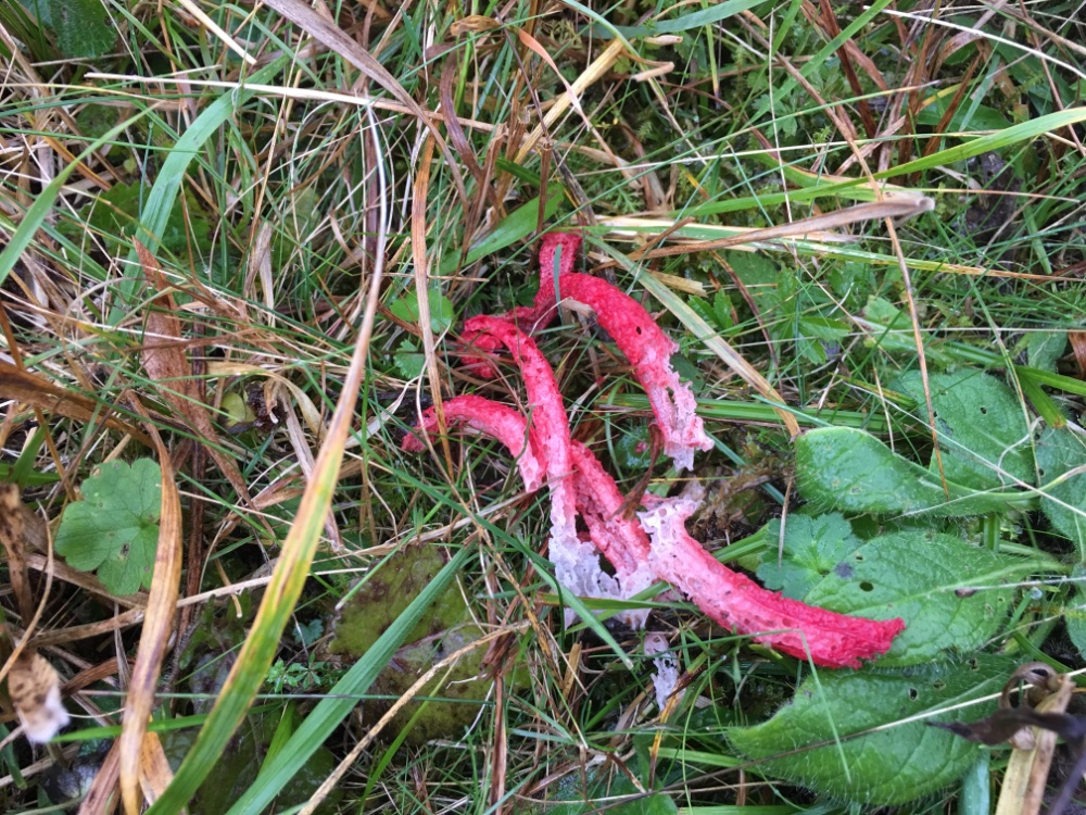 In einer kleinen, feuchten Mulde wuchs zumindest ein junger Fruchtkörper eines hübschen Scheidlings, gemeinsam mit einigen Exemplaren von Lycoperdon pratense. Im weitern Verlaufe kamen mir dann noch zwei weitere, ausgewachsene Einzelexemplare unter.