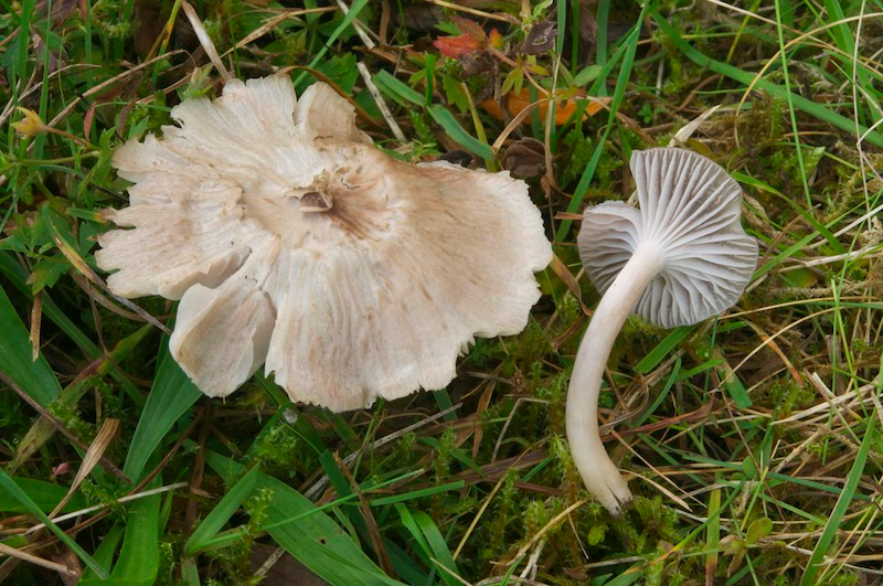Einen violettlichen Farbton konnte ich trocken nicht beobachten, schon aber schwache Rosatöne. Zugegebenermaßen liegen diese Farbtöne nah beieinander, worauf auch Ludwig hinweist."Hut […] trocken weißlich grau mit violettlichem Hauch"