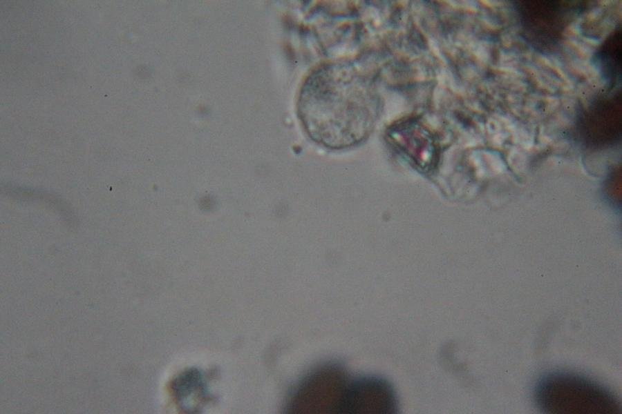 Psathyrella hirta ist auch noch einmal drangekommen, schön langsam gehen dem die Lamellen aus. Diesmal habe ich weder Basidien noch Cheilos angetroffen, die wollte ich besser darstellen. Eingeschränkt funktioniert hat es mit der HDS. Von einem Exsikkat eine gute Probe zu entnehmen hat so seine Tücken; kleine Sünden straft der Herr sofort, ich hätte sie mit zwei befeuchteten Rasierklingen am Fundtag entnehmen können ...