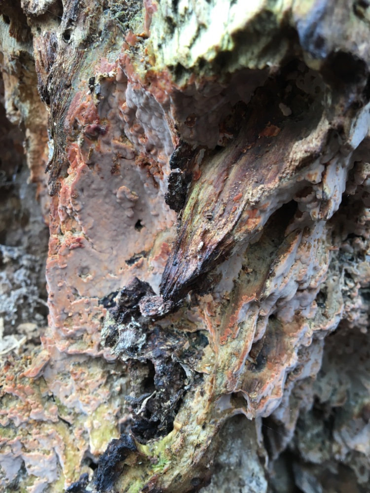 Der Pilz wuchs relativ großflächig über den halben Stumpf und ist auch relativ dick.