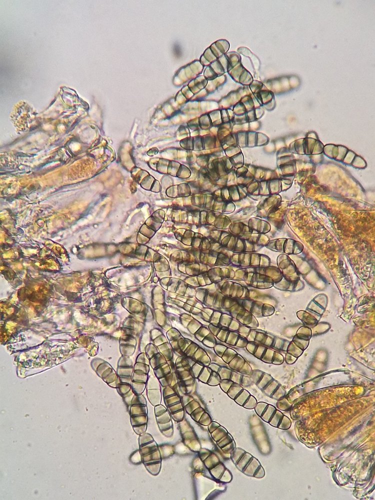 Die Sporen sind 3-fach septiert und haben eine durchschnittliche Größe von 25 x 10 µm.