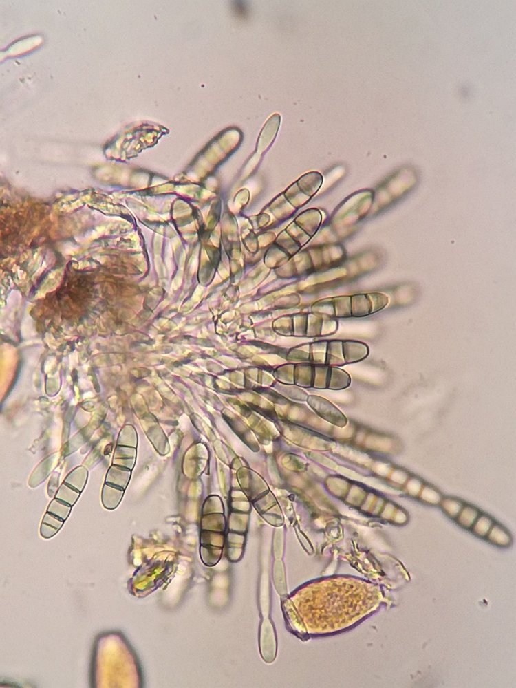 Die Sporen sind 3-fach septiert und haben eine durchschnittliche Größe von 25 x 10 µm.