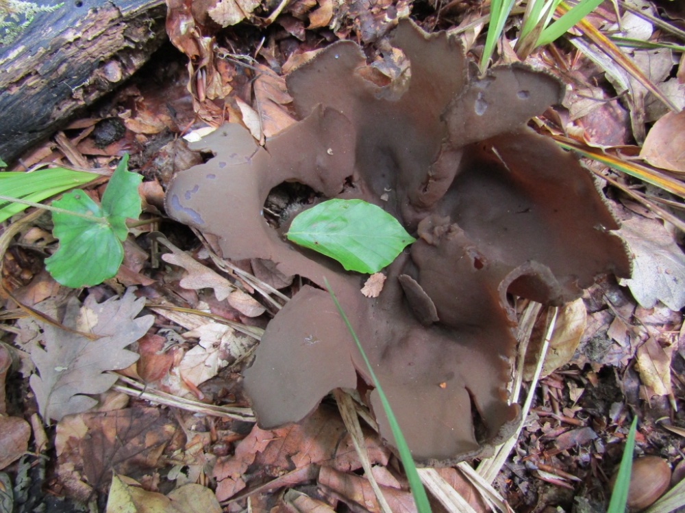 gestern fand ich im Wienerwald in Wien zwischen Kreuzeichenwiese und Heuberg im Buchenwald mit eingestreuten Eichen sehr schöne große Exemplare von Becherlingen, vermutlich Peziza badia.