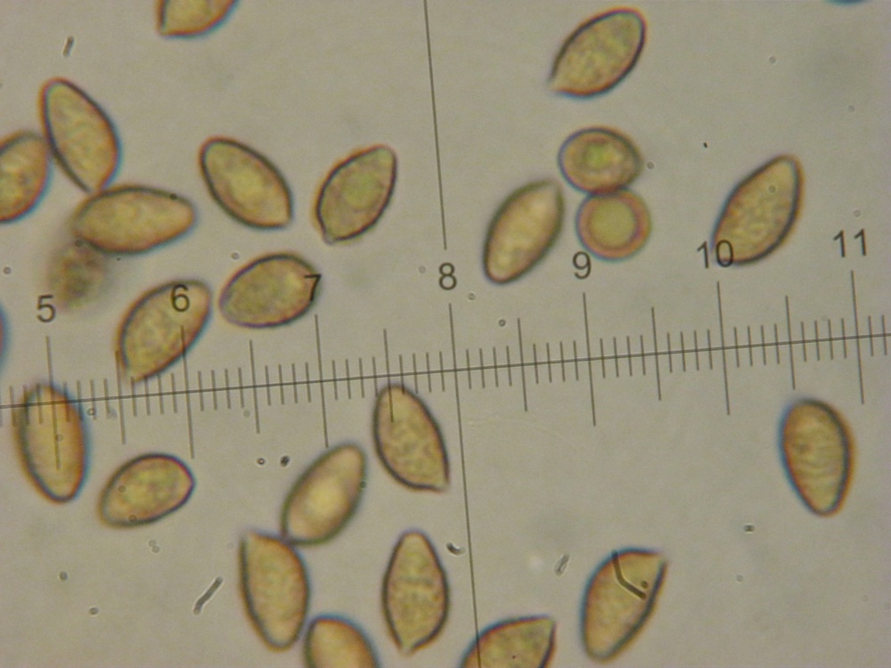 Sporen: 8,25-9,75x4,5-5,5ym, amygdaloid, mit vergleichsweise großem Apikulus, Keimporus?, Ornamentierung erkennbar, in Melzer deutlich dextrinoid