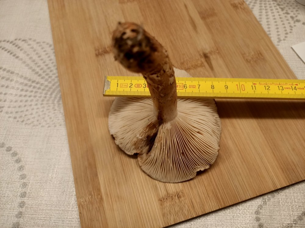 Die Exemplare wurden mit jenen oben am gleichen Tag gesammelt. Deutlich unterschiedlicher Merkmal ist, dass hier 6-7 Fruchtkörper auf ca. 4 m² einzeln standen (im Gegensatz zu oben, welche in ganz dichten, markanten Sträußen), und dass sie alle deutlich größer als zum selben Zeitpunkt die obigen) waren. Der Stiel ist nicht wattig, sondern hohl.