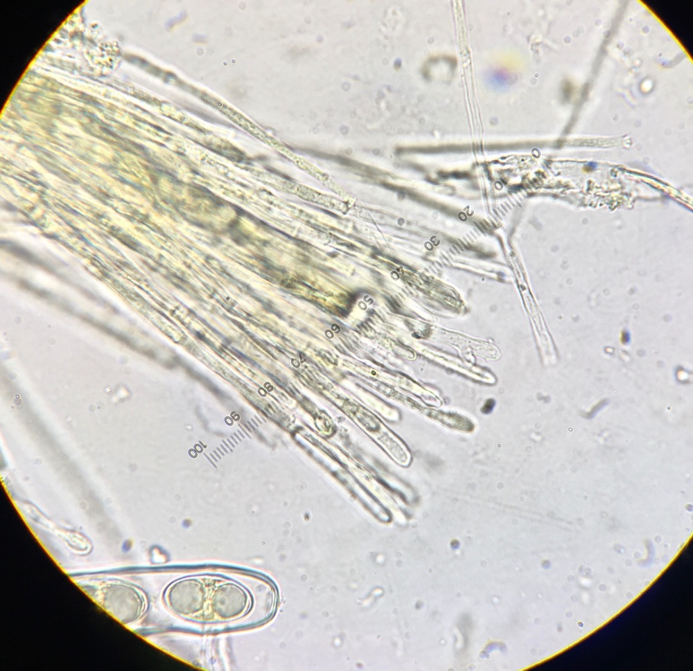 Die Paraphysen sind teilweise verzweigt, das Ende ist etwas verdickt.
