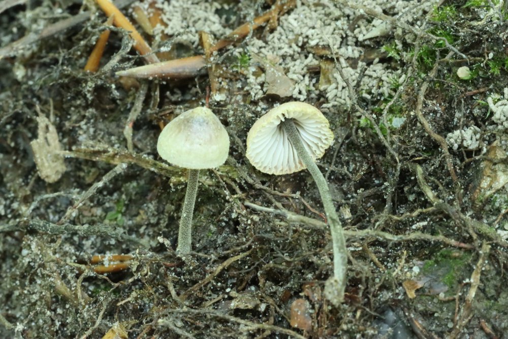 gestern hab ich gemeinsam mit Christian und Wolfgang in Rekawinkel (Mischwald) einen Helmling gefunden, der mich jetzt schon einige Zeit beschäftigt. Der Pilz ist sehr klein, Hutdurchmesser etwa 5 mm und wuchs auf dem Boden am Wegrand. Der Stiel ist auffällig bereift und wurzelt nicht. Die Hutmitte ist dunkler, Geruch konnte ich keinen feststellen.
