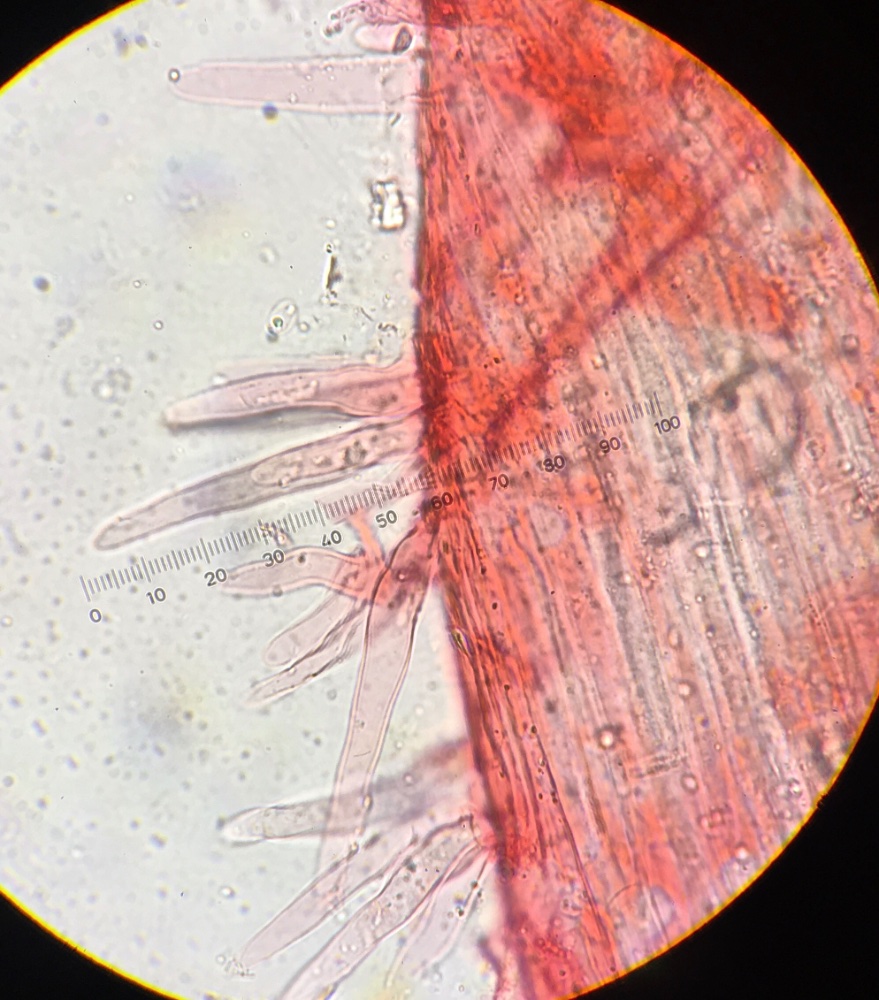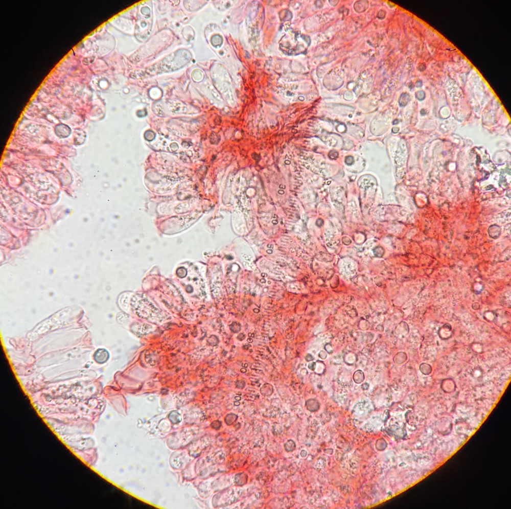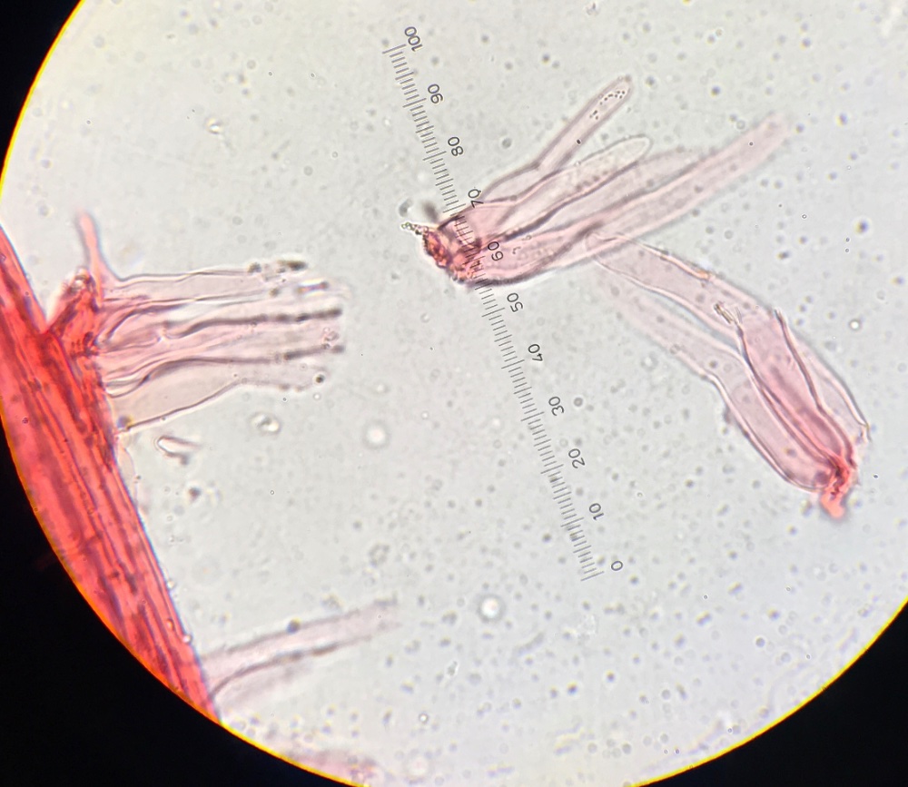 Mycena parca sieht mikroskopisch ähnlich aus, aber ich glaub das passt nicht. Mycena pilosella sieht makroskopisch ähnlich aus, aber da passt vor allem die Sporengröße nicht. Ich komme da irgendwie nicht vom Fleck...
