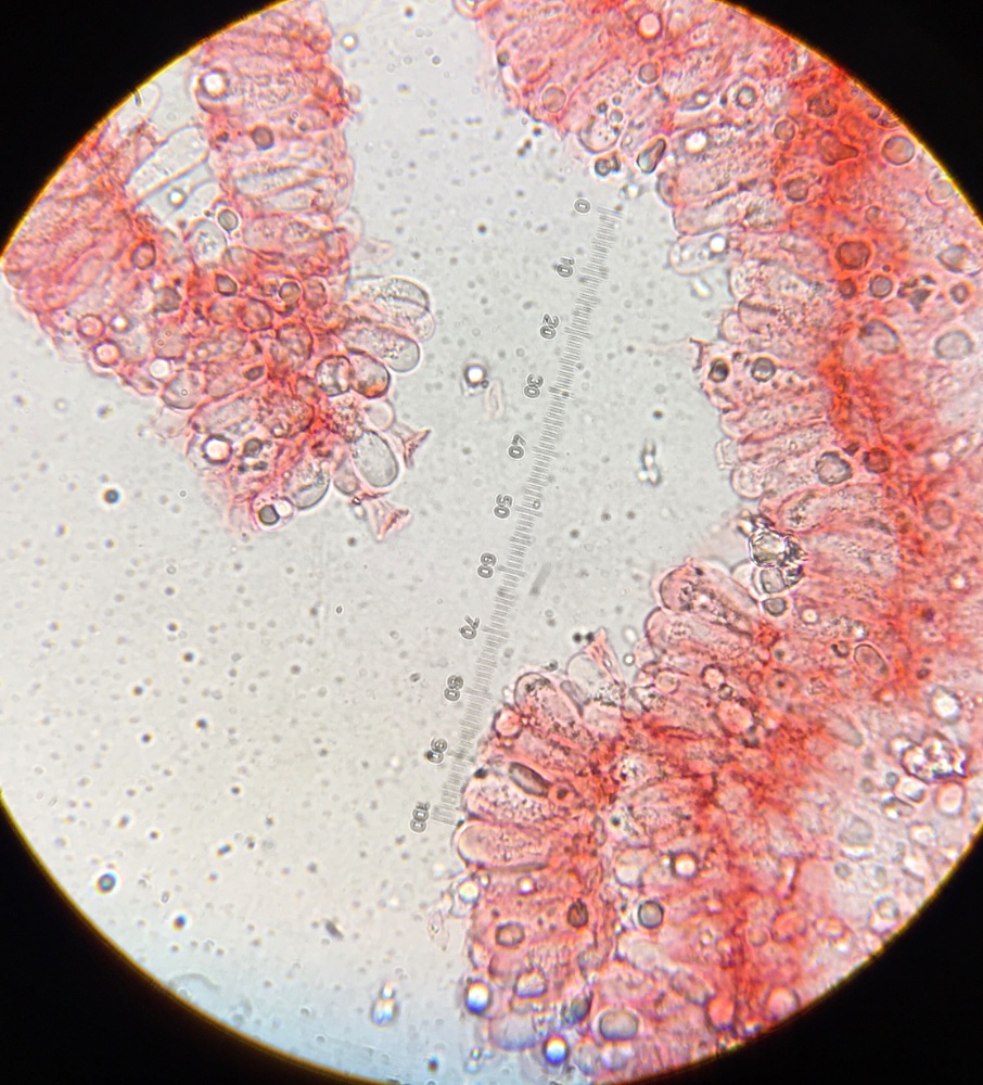 Ich habe den Pilz mikroskopiert und folgende Sporenmaße ermittelt: 6 - 7 x 4 - 5