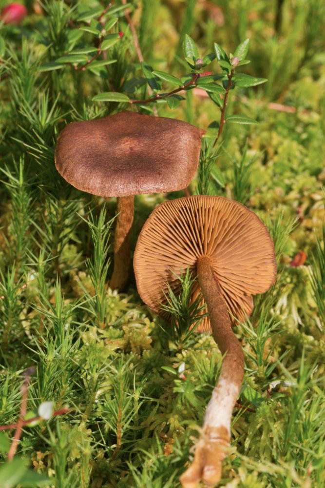 Ein paar schöne Schleierlinge standen im Torfmoos - da kann ich leider nur spekulieren - vielleicht ein Cortinarius tubarius? Durchmesser ca. 3 bis 4 cm, Geruch erdig, leicht nach Kohlrabi: