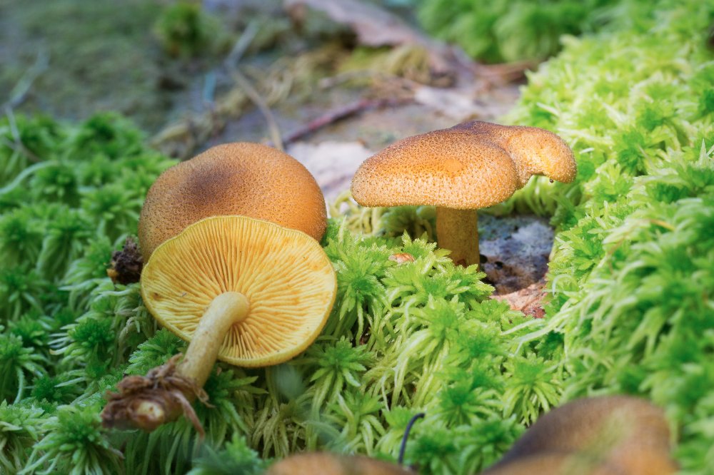 Im moosreichen Fichtenwald neben einigen Eierschwammerln, Fichten-Reizkern und Düsteren Röhrlingen oder Sparassis crispa bei Föhren war Tapinella atrotomentosa der häufigste Pilz: