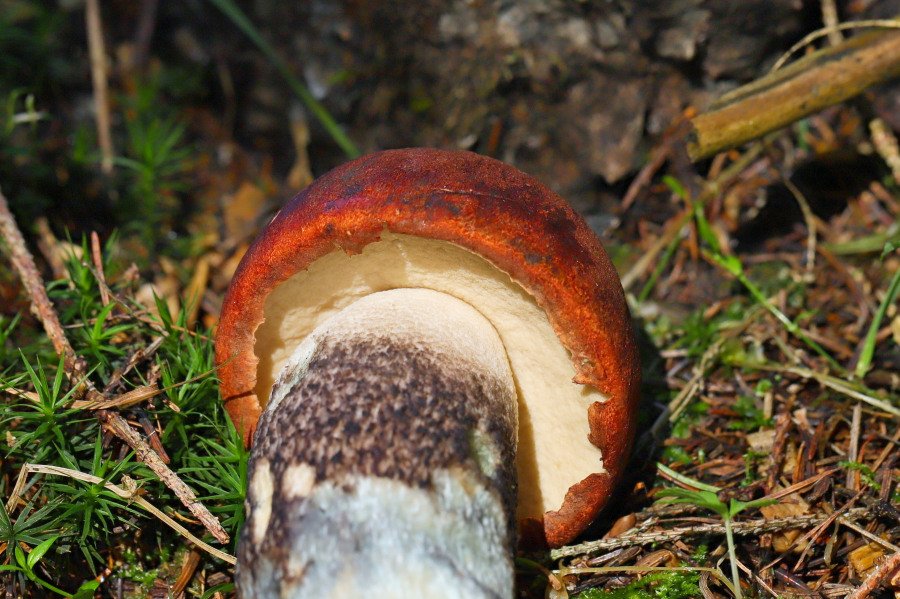 Ich hätte es vermutlich noch viel deutlicher machen müssen: das Foto ist kein Standortfoto, sondern gestellt. Aufgenommen im nachmittäglcihen Sonnenlicht. Die richtige Hutfarbe kommt dabei leider nicht heraus. Sie war deutlich dunkler als auf den Fotos, war richtig dunkelrot, wie Rotwein. Am ehesten zutreffend wäre die Hutfarbe, wie sie bei 123pilzsuche.de abgebildet ist: https://www.123pilzsuche.de/daten/detai ... rotka3.jpg