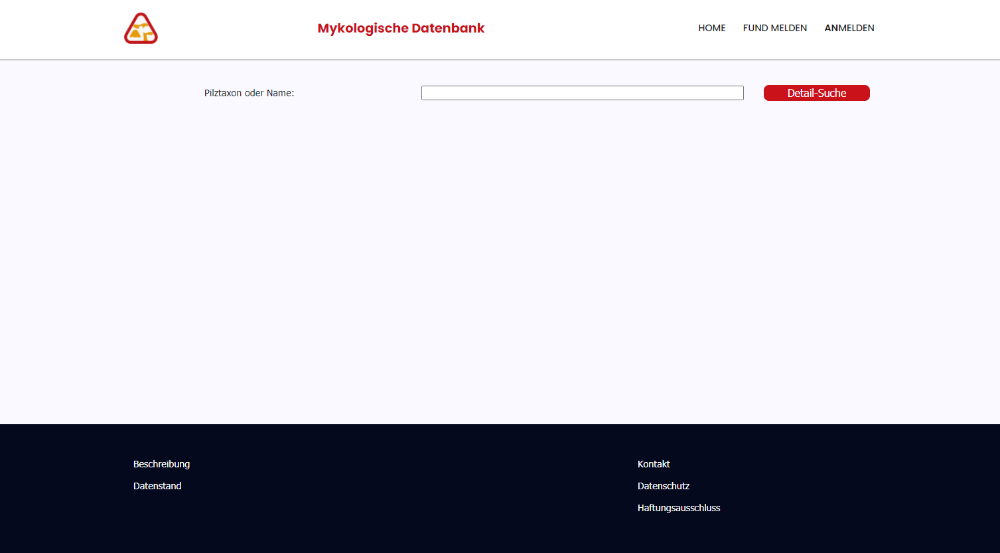 So sieht nach der Eingabe von https://pilzdaten-austria.eu/ die Einstiegsmaske der Datenbank aus: