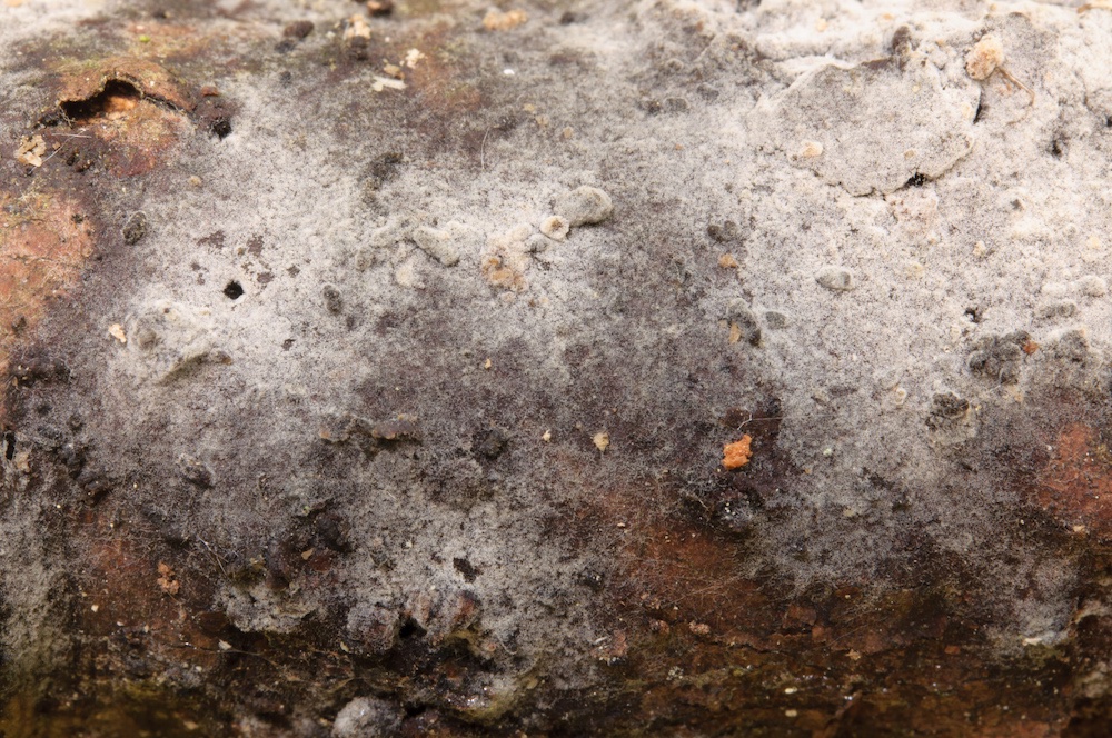 Botryobasidium conspersum: Nebenfruchtform. Liegender Quercus-Ast.