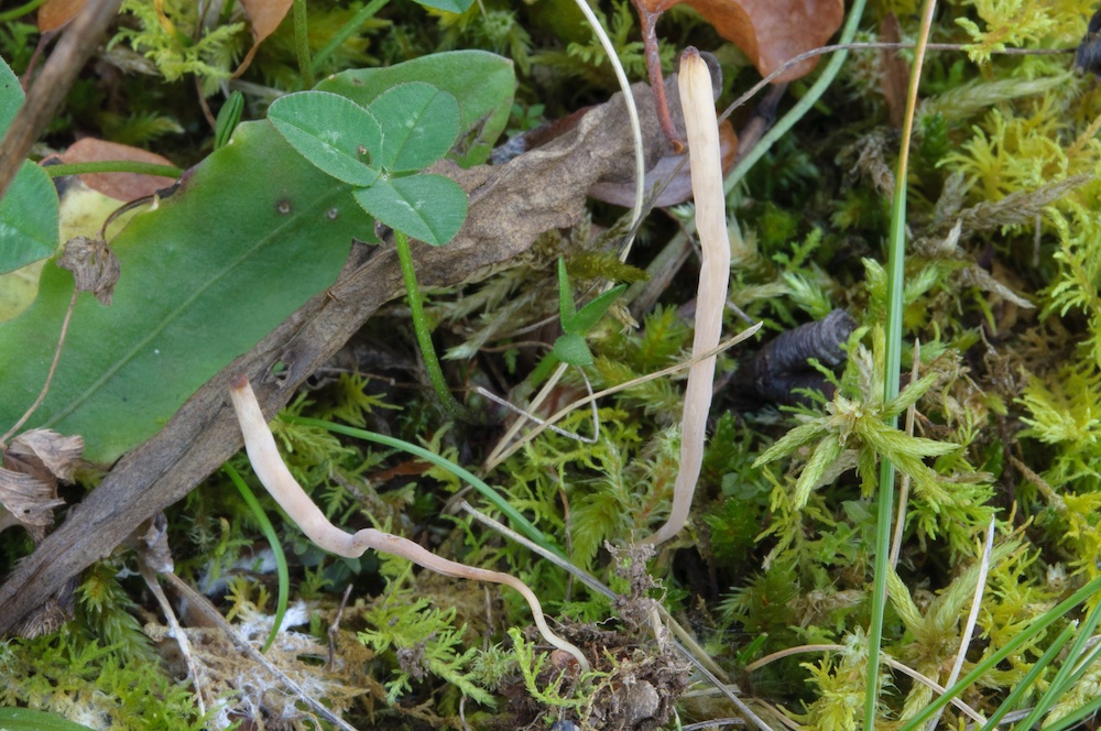 So ein ähnliches Keulchen mit Inkarnat-Ton habe ich letztes Jahr ebenfalls gefunden und als Clavaria cf. incarnata bestimmt (Bas 4-sporig, mit Bogenschnallen; Sp –10 µm lang, ellipsoid, oft in der Mitte etwas eingeschnürt). Leider waren sie nicht mehr ganz frisch, ein Wiederfund ist mir bislang nicht gelungen.