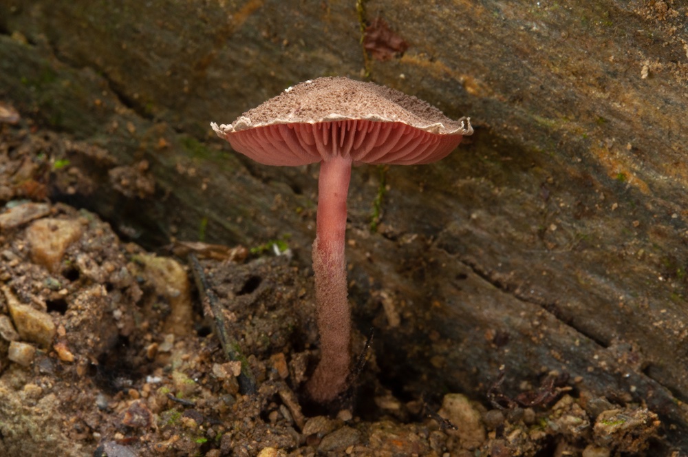 Mucronella calva s. l.: Unterseite von Fomitopsis pinicola.
