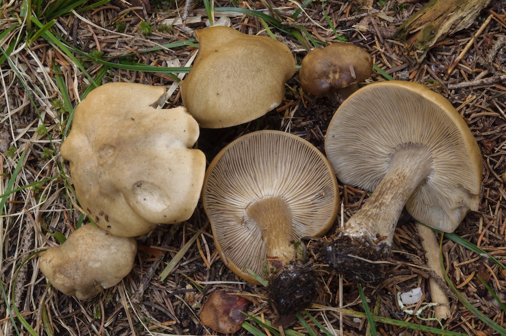 Suillus grevillei, Suillus tridentinus, Suillus cavipes und Suillus viscidus: Unter Larix, etwa 3 m voneinander entfernt. .