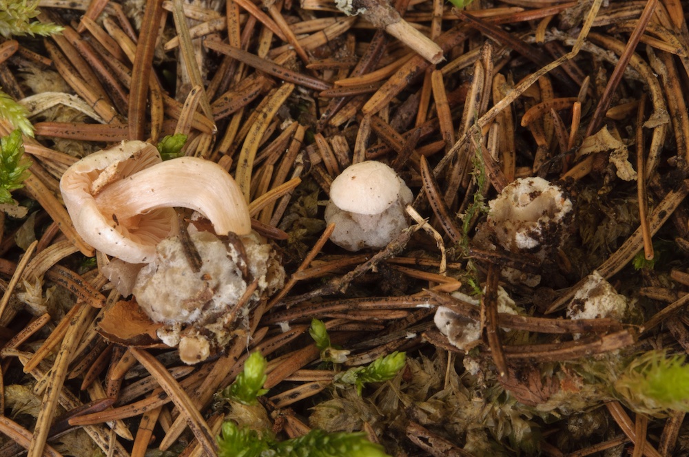Lepista ricekii: Grasiger Bergnadelwald, Picea und Larix.