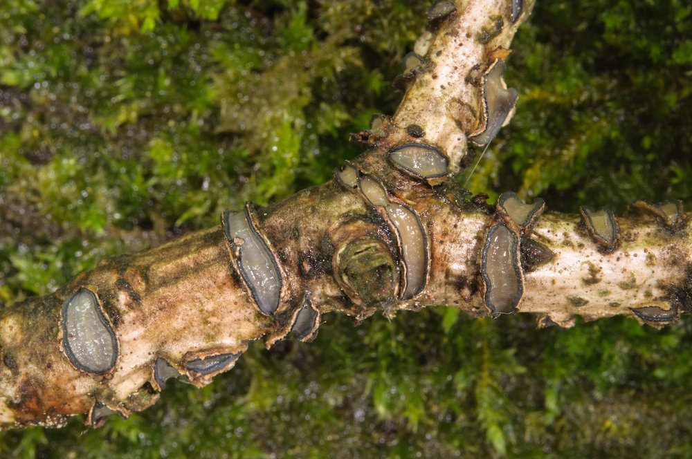 Myxarium hyalinum: Liegender Laubholz-Ast.