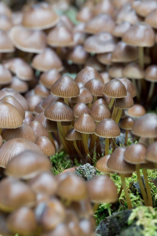 Am Boden eine Gruppe von Winzlingen, die hoffentlich zur Gattung Hemimycena gehören?: