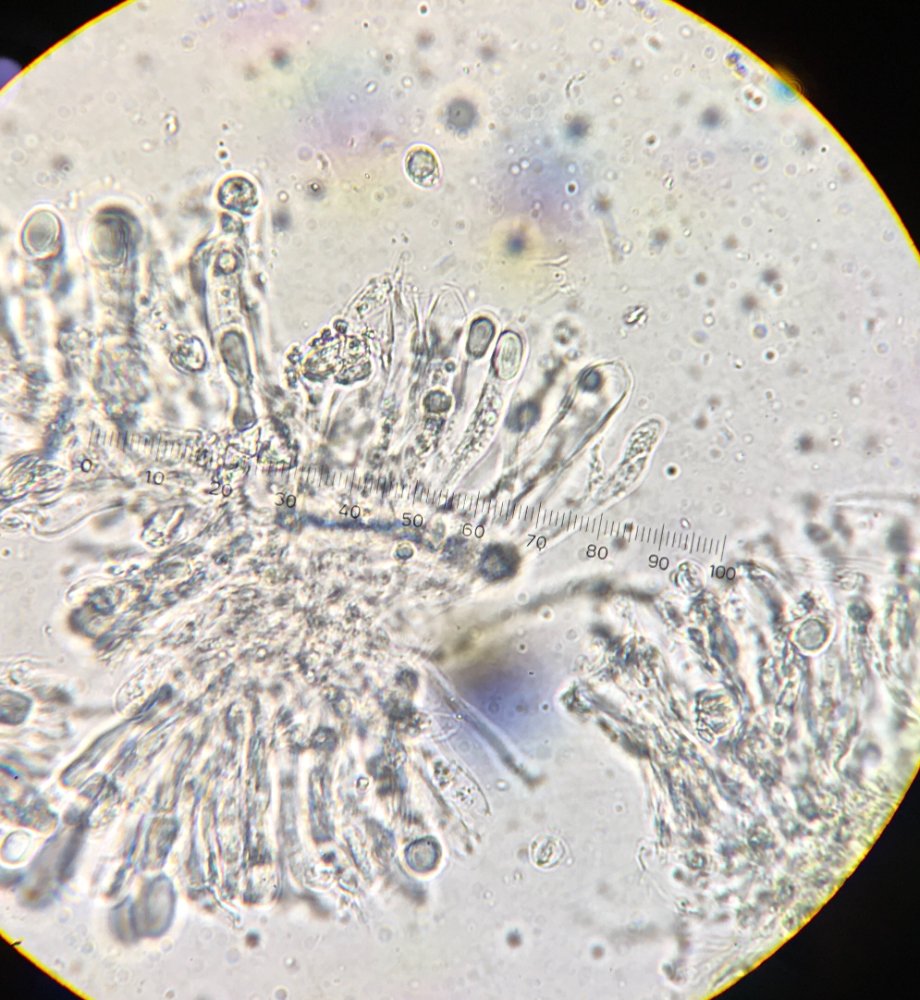 Bei diesem Pilz bin ich sehr am grübeln... Hygrocybe canescens sieht ähnlich aus und hat ähnliche Sporen, aber sicher bin ich mir nicht. Habt ihr eine Idee?