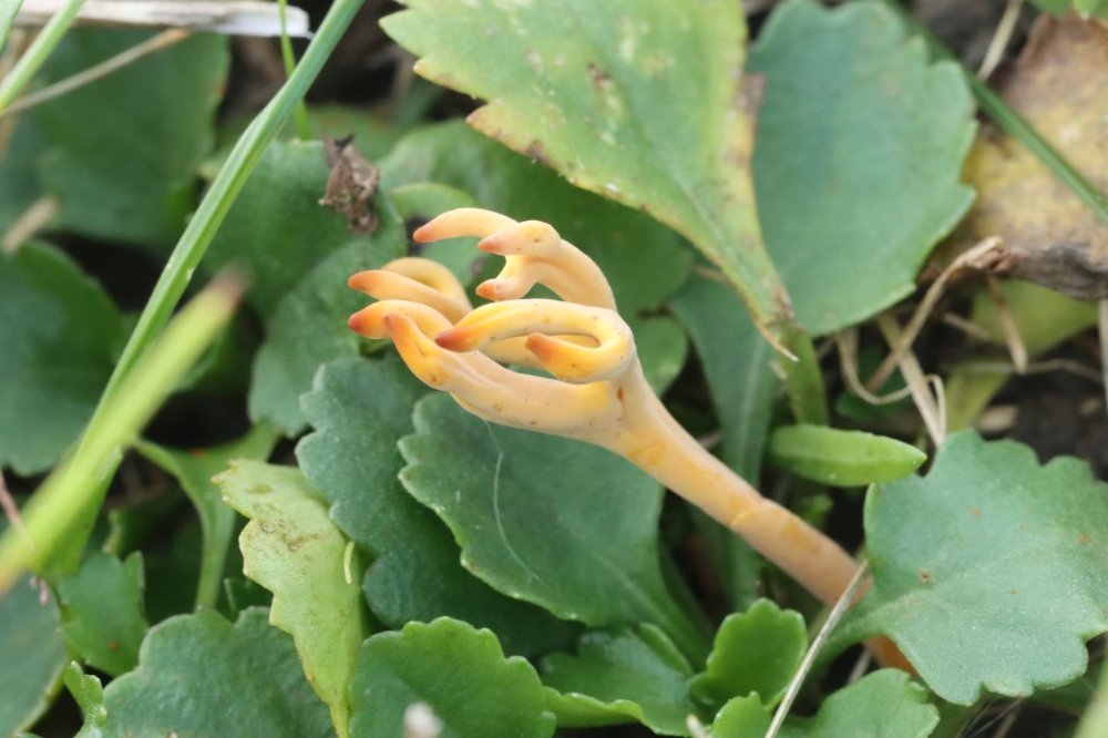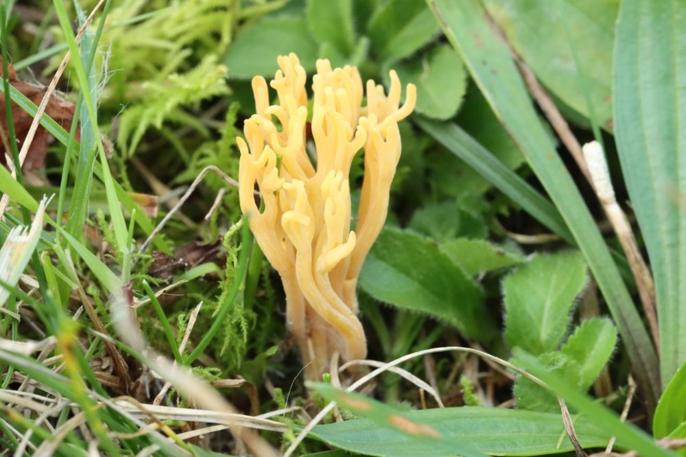 Clavulinopsis corniculata, die wirklich zahlreich auf dieser Wiese zu finden war. Sie hat ziemlich stark gerochen.
