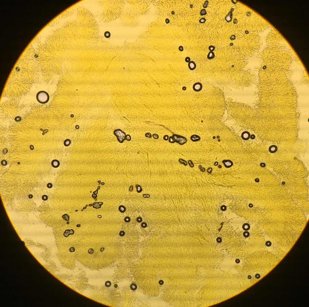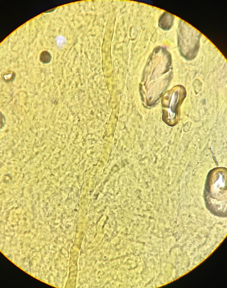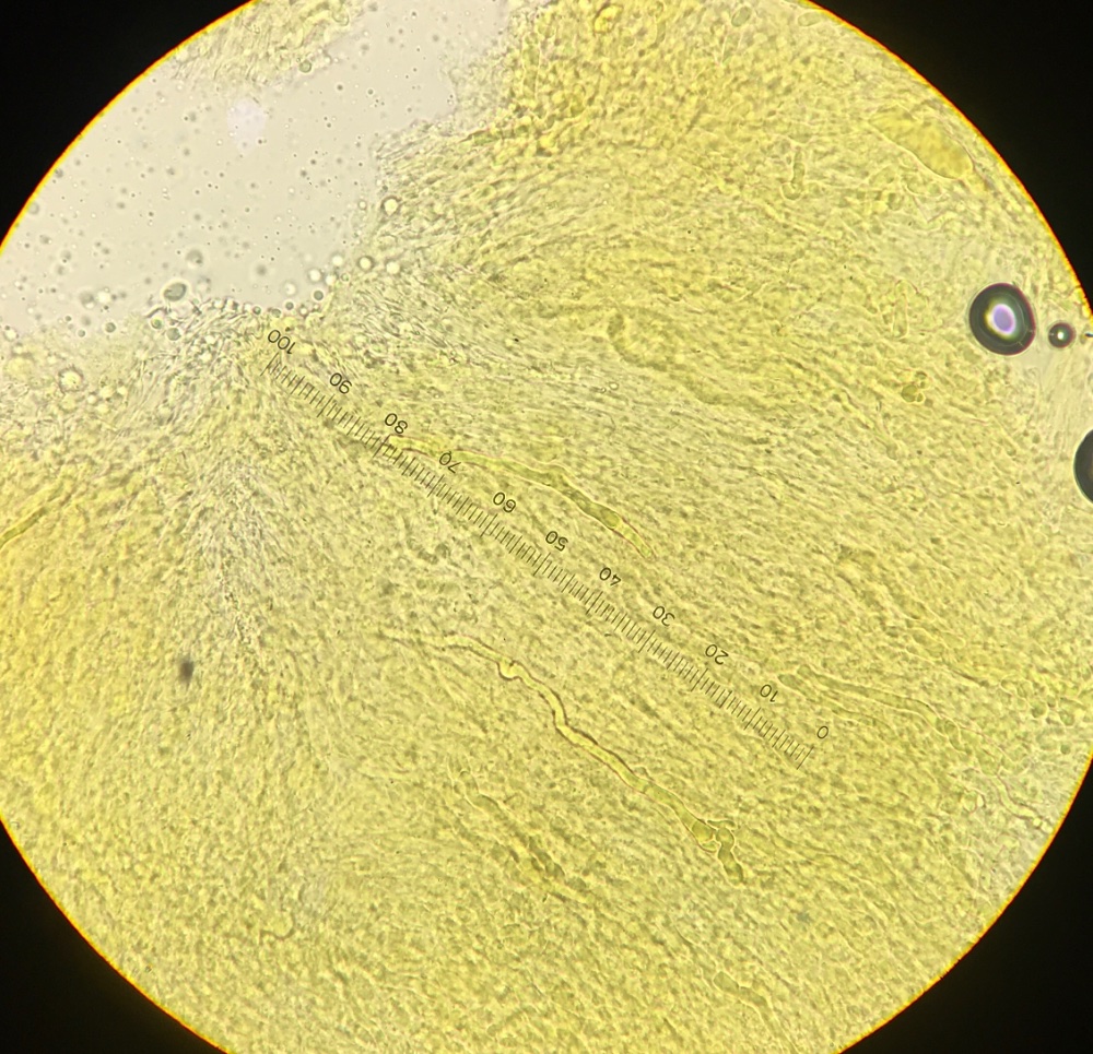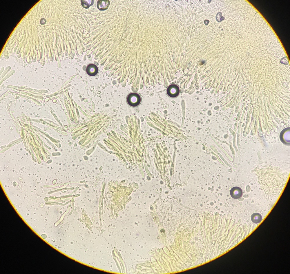 Die Fotos sind großteils bei 40facher Vergrößerung aufgenommen. Ich konnte die einezelnen Hyphen nicht gut erkennen, nur diese komisch langen waren gut sichtbar.