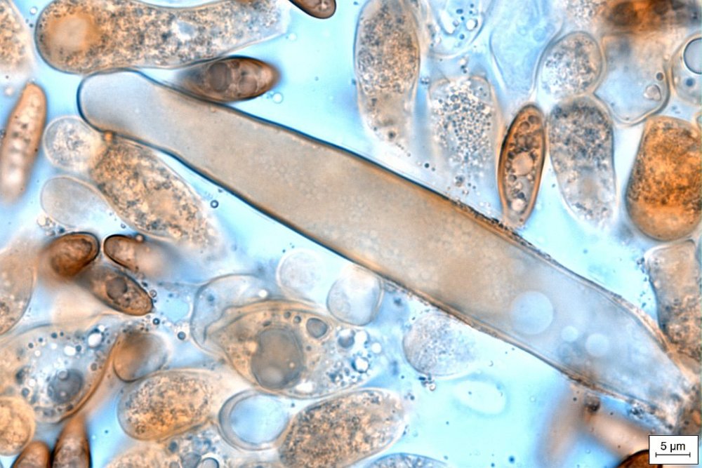 Schöne Funde. Der orangegelbliche Porling erinnert mich an Tyromyces kmetii und dein Sporenfoto könnte auch passen. Chroogomphus purpurascens haben hab ich aus dem Helenental auch schon einmal bestimmt. Wir haben von den neuer unterschiedenen Arten halt auch noch wenig Überblick über die Verbreitung bei uns.